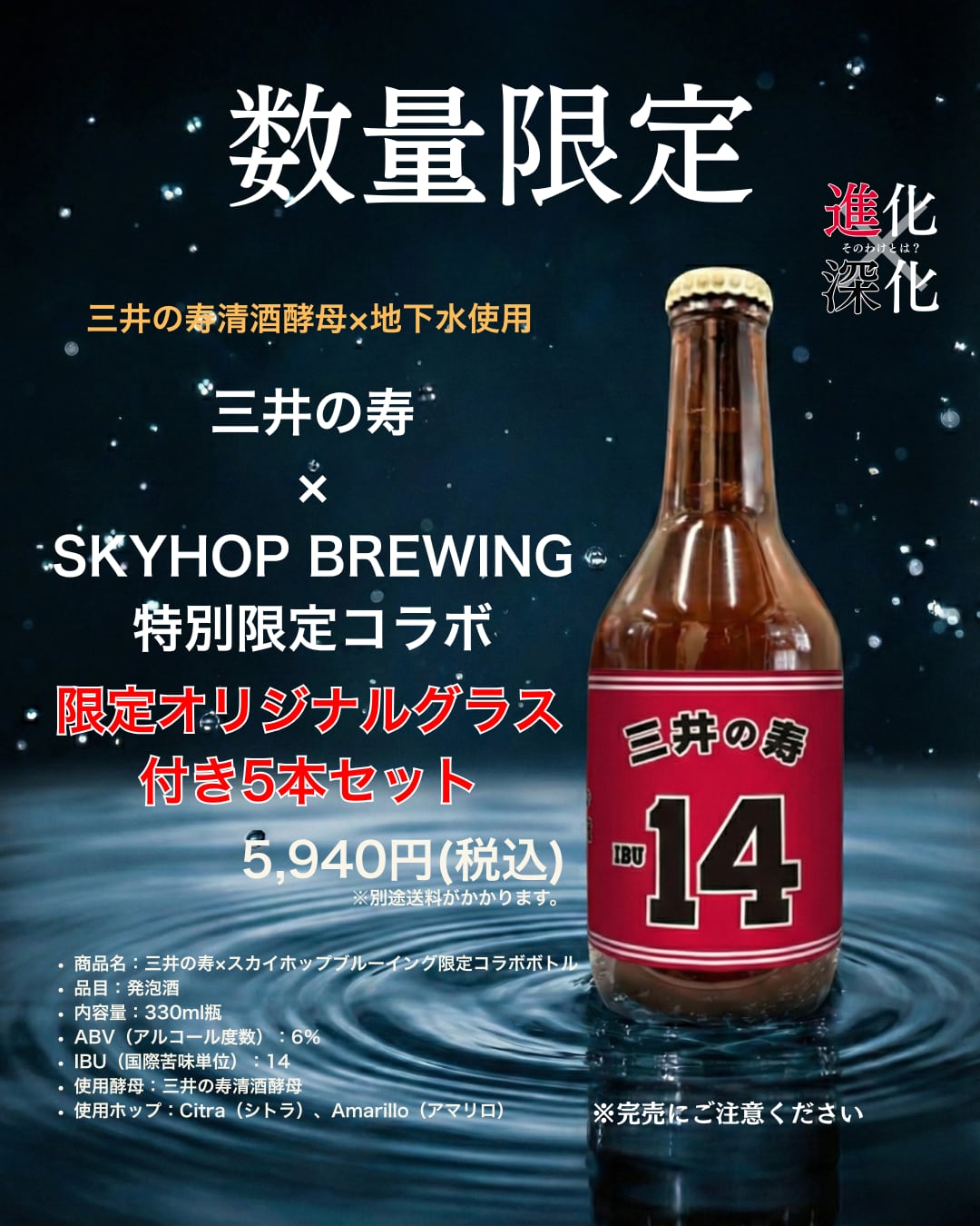 福岡の老舗酒蔵「三井の寿」と、山口県周南市のブルワリー「スカイホップブルーイング」。 自由な発想と常識にとらわれない製法で製造を続けるスカイホップブルーイングの社長と、三井の寿の社長が意気投合し、「奇跡の共演」が実現しました。